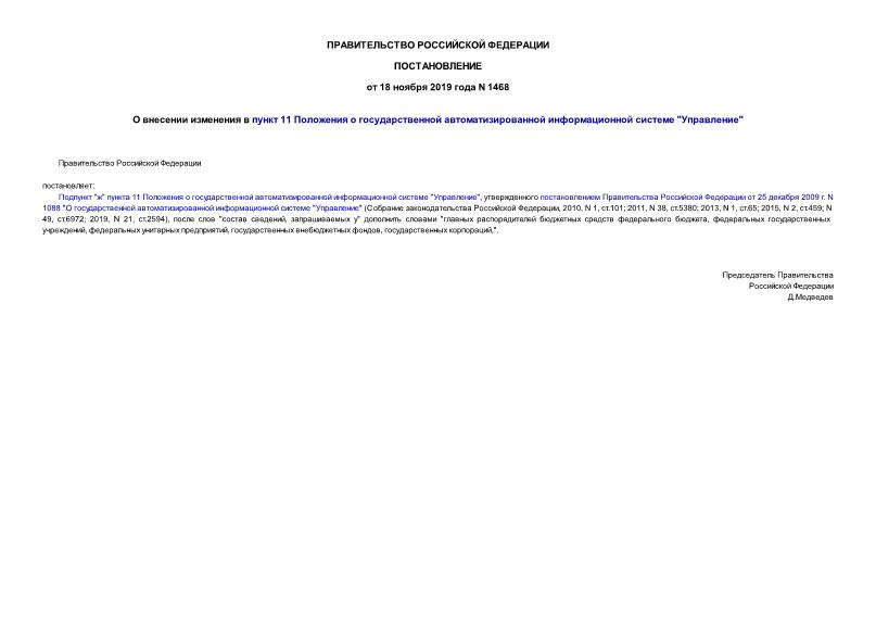 Постановление 1468 О внесении изменения в пункт 11 Положения о государственной автоматизированной информационной системе "Управление"